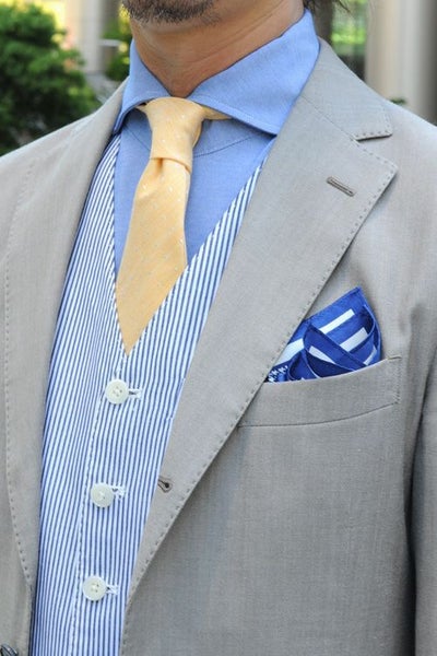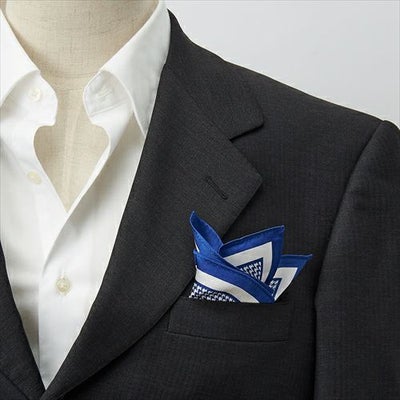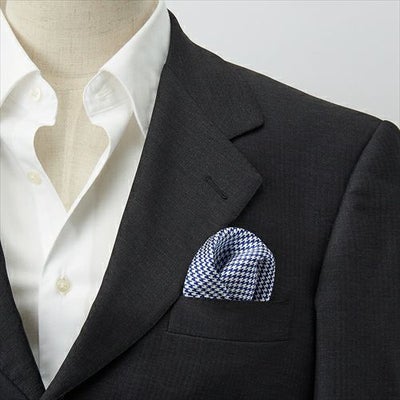 シルク100%日本製ポケットチーフ!千鳥格子柄がシャレ感あふれる!ビジネスからカジュアルまで胸元にアクセントをつけてワンランク上の着こなしをお楽しみください。ブルー 青