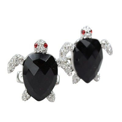 ブラックオニキスを甲の形に加工し、目には赤いスワロフスキーを施した、ファニーかつシャープな亀のカフリンクス
