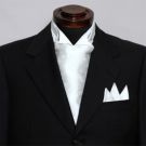 セレモニーやパーティーシーン、オフスタイルを上品に彩るアスコットタイ。同生地のポケットチーフ付き