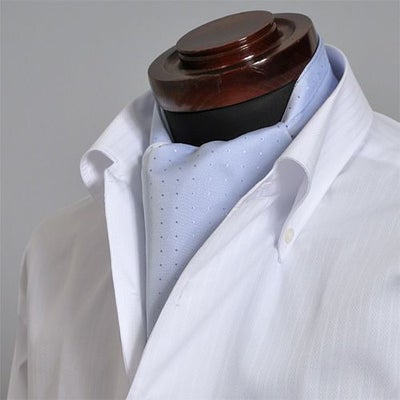 ■■送料無料■■シルク100%の日本製!セレモニーやパーティーシーン、オフスタイルを上品に彩るアスコットタイ。同生地のポケットチーフ付き サックス