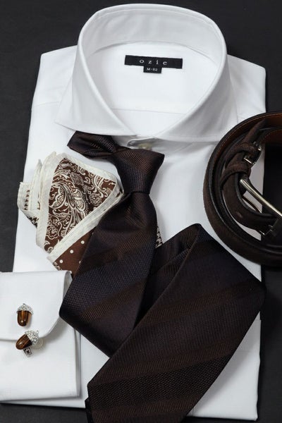 イタリア製生地の高級感で衿元に深い印象を与えます。