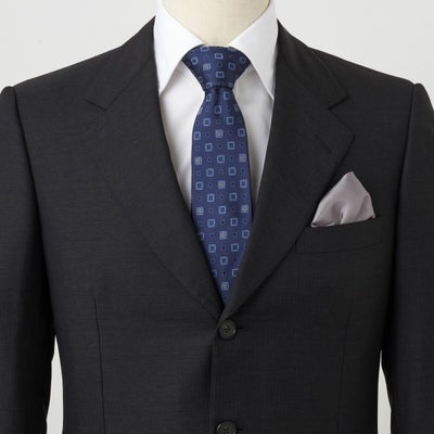 イタリア製生地の高級感で衿元に深い印象を与えます。