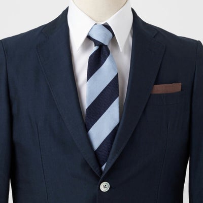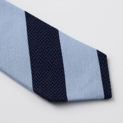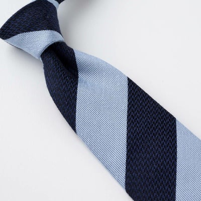 【麻ネクタイ・リネンタイ】レジメンタル・サックスブルー×ネイビーブルー・日本製