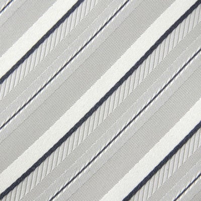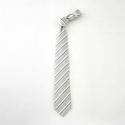 シルク100%!フォーマル・ビジネスに最適な日本製レジメンタル柄シルバーネクタイ
