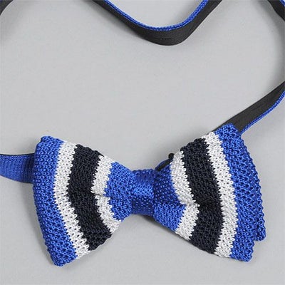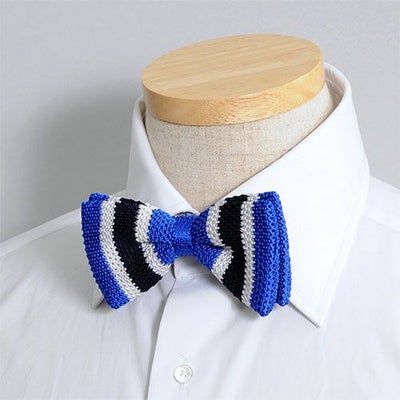 【蝶ネクタイ・ニットタイ】ストライプ・ブルーxネイビー