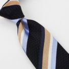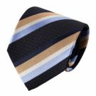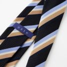 ネイビー地にゴールド、白、サックスブルーのレジメンタル柄。