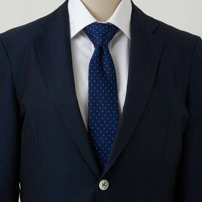 いつものネクタイをナロータイにかえるだけで、ぐっとおしゃれ上級者の印象に。