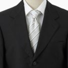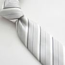 シルク100%!フォーマル・ビジネスに最適な日本製レジメンタル柄シルバーネクタイ