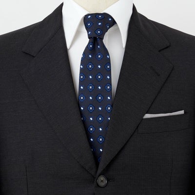 【山梨ファブリックタイ・ネクタイ】アーカイブ・小紋・ネイビーブルー・日本製