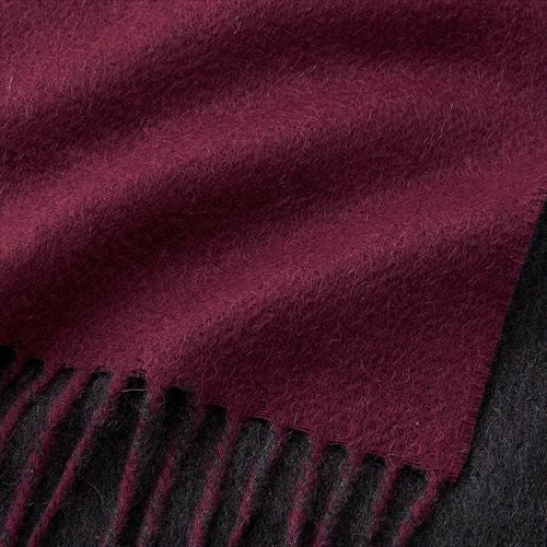 カシミヤ100%・リバーシブル・無地・チャコールグレーxワインレッド