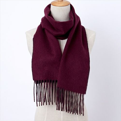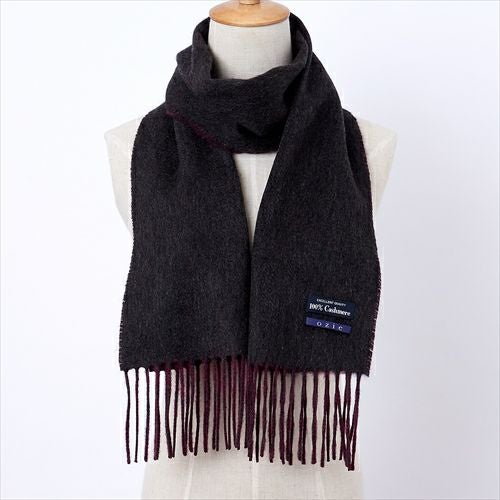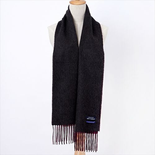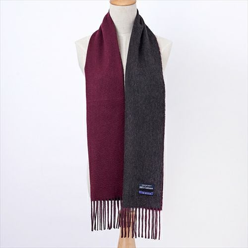 【マフラー】カシミヤ100%・リバーシブル・無地・チャコールグレーxワインレッド