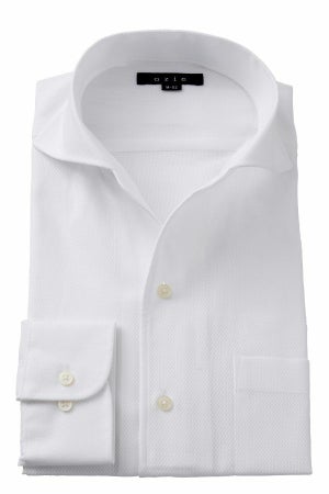 【メンズ・ドレスシャツ・ワイシャツ】ナチュラルフィット・プレミアムコットン・からみ織り・イタリアンカラー・ワイドカラー・第一ボタンありのレビュー