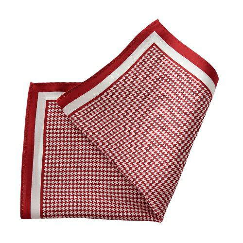 【ポケットチーフ】シルク100%・レッド・千鳥格子・日本製